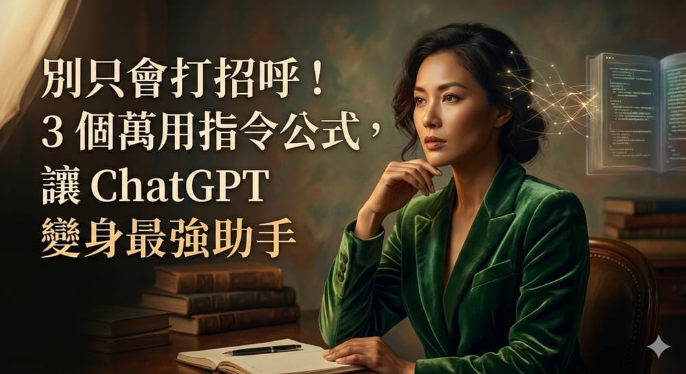 這篇 ChatGPT 指令公式教學會用 3 個最實用的 Prompt 模板,幫你從只會打招呼的新手,進階到能寫文案、做規劃與處理日常工作的高效率使用者。