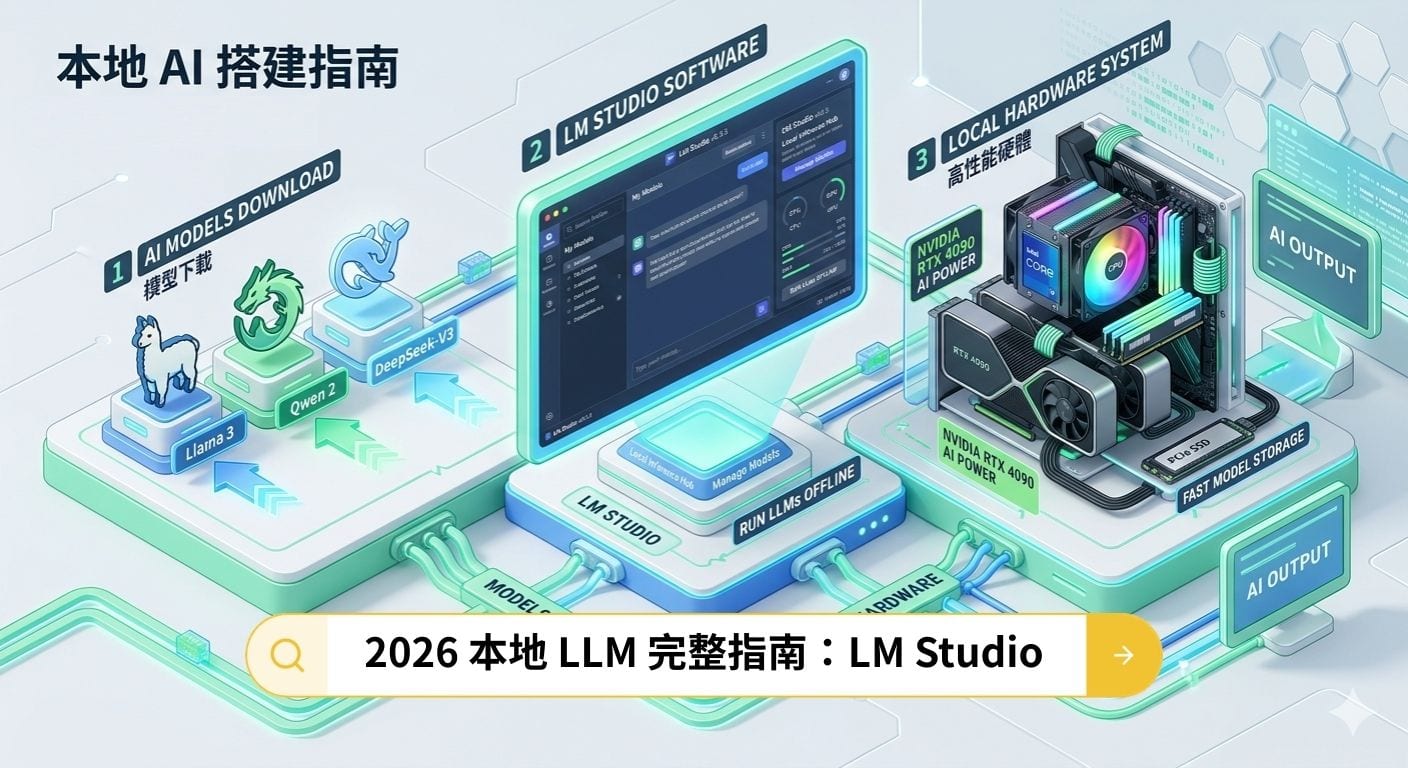 這篇本地 LLM 與 LM Studio 教學會從模型選擇、硬體配置、安裝流程、常見名詞到本機 API 用法完整整理,幫你在自己的電腦上穩定跑起第一個 AI 模型。